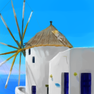 ググッた画像をSAIで模写ってらくがき。たまに風景が描きたくなりますよ。屋根で寝てるのはロス兄さん希望!自宅に風車っておしゃれすぎる!