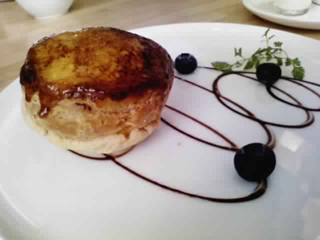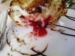 こげ目のついた固めの皮、サックリとナイフを入れるとあふれだすカスタードと苺ペースト。とろけました…!