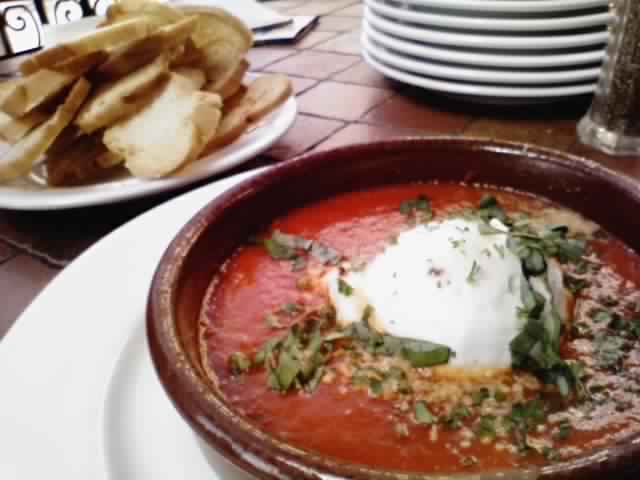 山羊チーズとトマトソースに、ガーリックトーストをつけるおつまみっぽい料理。山羊チーズはかなりクセがあるけど、トマトと合わせると全然気にならない^v^美味しかったですv